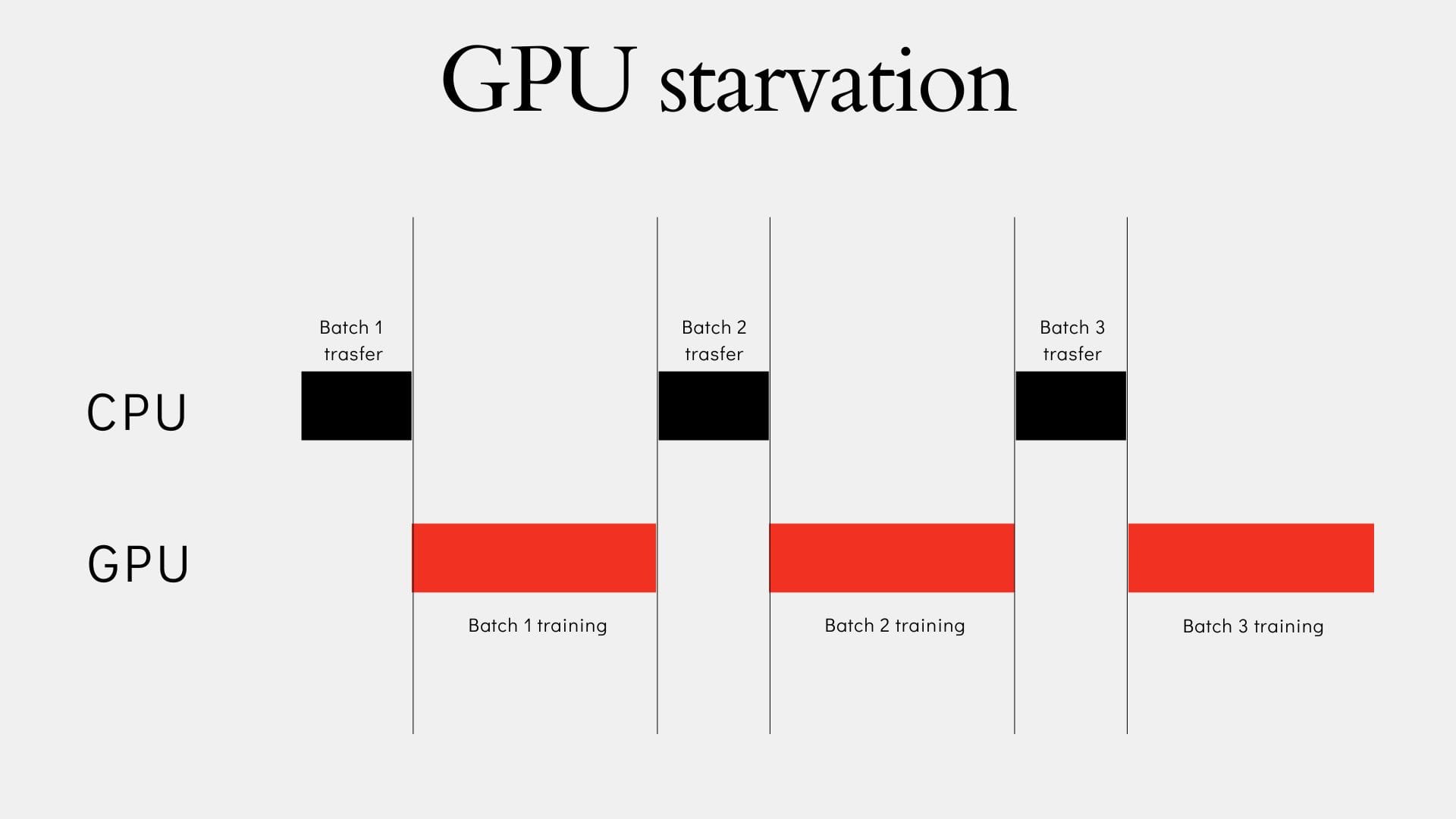 In un tipico sistema di training, la GPU è il motore di calcolo, mentre la CPU è responsabile della preparazione dei dati. Se il disco è lento, la CPU passa la maggior parte del tempo ad attendere i dati, diventando il collo di bottiglia primario. Di conseguenza, la GPU, non avendo dati da elaborare, rimane inattiva.