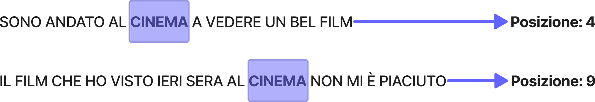 Aggiungendo quindi le informazioni posizionali delle parole agli embedding testuali otteniamo degli embedding che contengono sia le relazioni semantiche tra le parole che informazioni contestuali presenti nella frase in input.