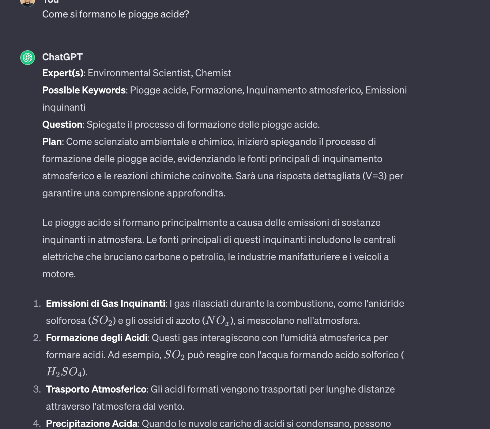 Ogni volta che facciamo una domanda, questo risponderà in maniera sempre coerente e precisa, seguendo una scaletta logica definita all'interno delle istruzioni.